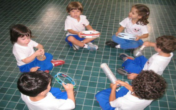 As aulas de música exploram cantigas, ritmos, gestos e movimentos corporais, estimulando a percepção auditiva, a coordenação, a expressão e a sensibilidade artística. É um momento de alegria e de construção de vínculos afetivos.