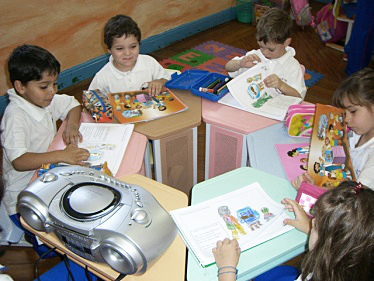 Ministradas por professora especializada, as aulas de inglês oferecem o primeiro contato com a língua por meio de histórias, rodas de conversa, músicas, culinária, tecnologia e propostas lúdicas. A abordagem natural e participativa favorece a compreensão e o interesse dos pequenos.